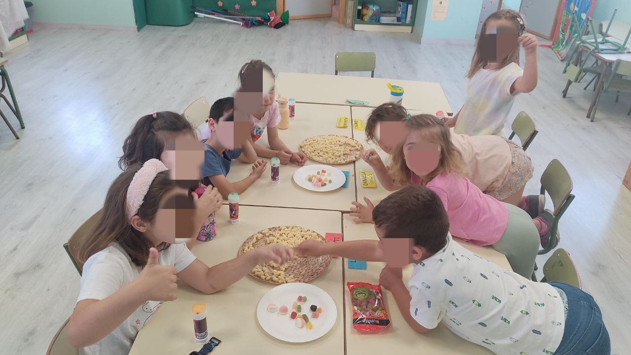 Para terminar teníamos que abrir la caja envuelta y descubrimos varias cosas: Unos pomperos para acabar la gymkana, unos bolígrafos de varios colores y unas chuches para reponer fuerzas después de toda la mañana realizando pruebas: