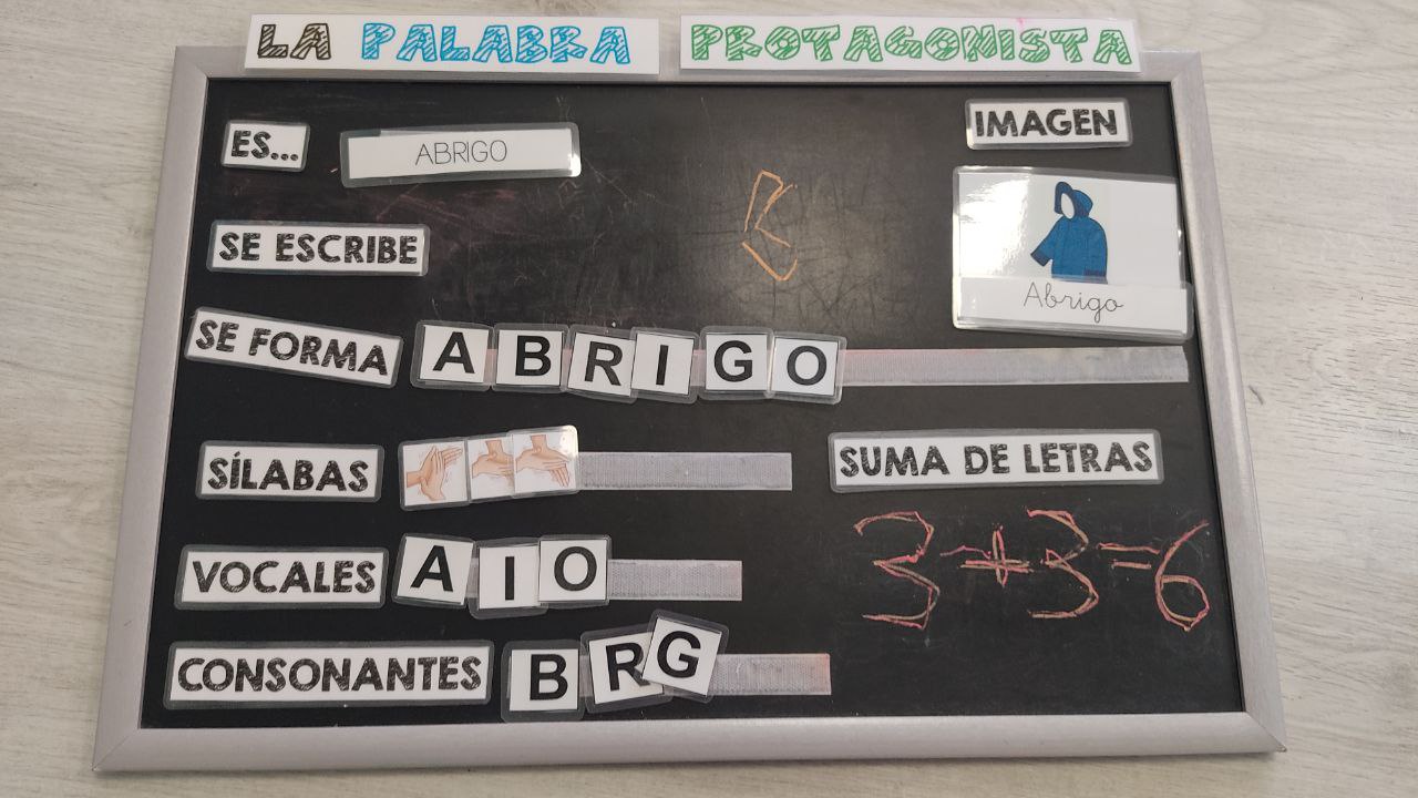 Siguiendo la lección de los tres tiempos de María Montessori y el panel de la palabra protagonista adquirimos diferente vocabulario relacionado con el invierno: